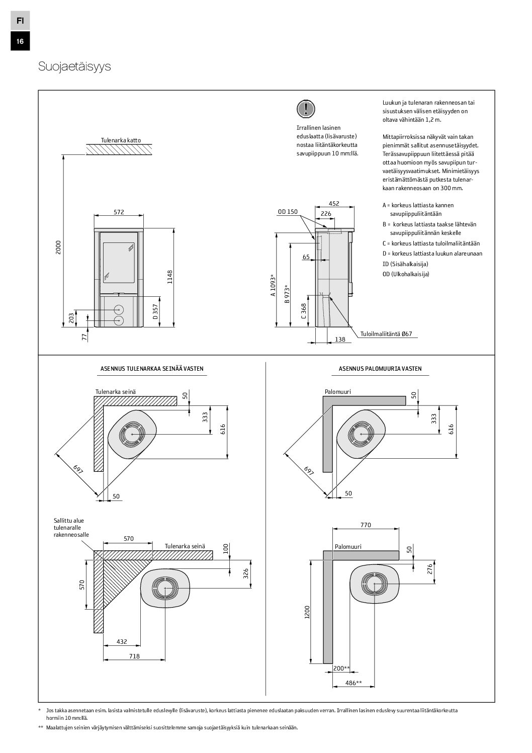 Suurin lämmitettävä pinta-ala (m²)150