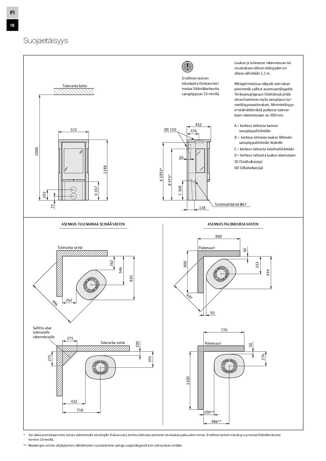 - Suojaetäisyys taakse vain 100 mm