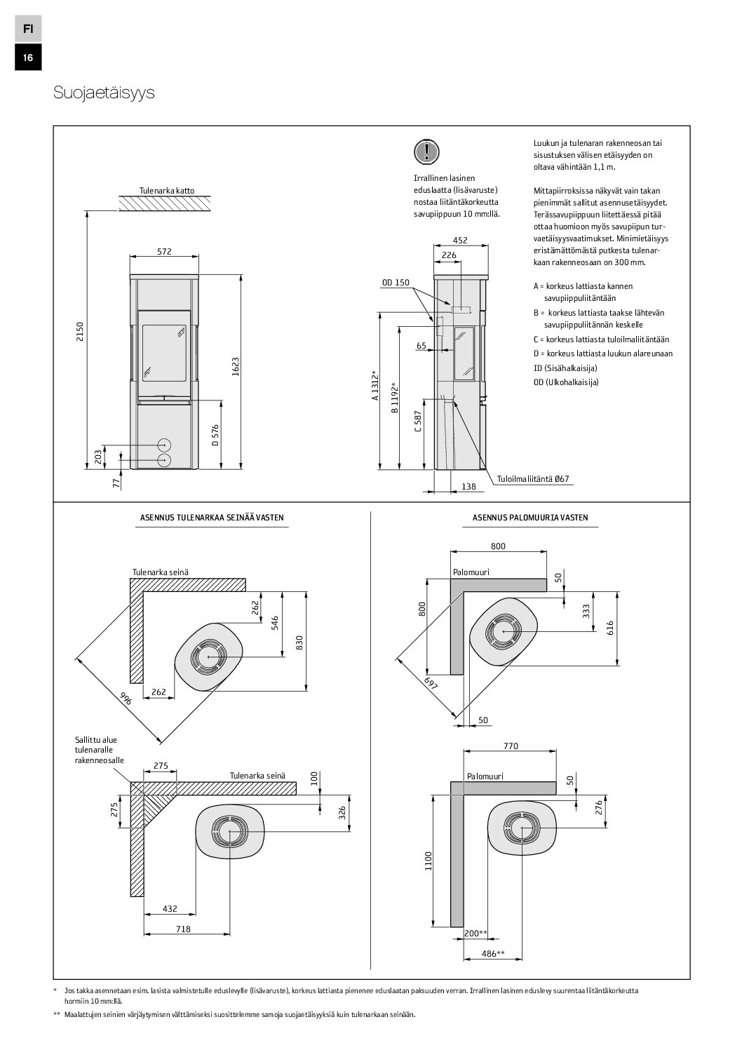 Suurin lämmitettävä pinta-ala (m²)150